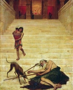 Introduction: The main theme of this Sunday’s readings is the warning that the selfish and extravagant use of God’s blessings, like wealth, with no share going to the poor and the needy, is a serious sin deserving eternal punishment. Today’s readings stress the truth that wealth without active mercy for the poor is great wickedness. It warns us against making money the goal of our existence. At the end of our lives God checks only what kind of persons we were and what good we did for others. We are on the right road when we use our earthly wealth to attain our heavenly goal. Amos, in the first reading, issues a powerful warning to those who seek wealth at the expense of the poor and who spend their time and their money only on themselves. He prophesies that those rich and self-indulgent people will be punished by God with exile because they don’t care for their poor and suffering brothers. The Responsorial Psalm (Ps. 146) praises Yahweh, Who cares for the poor. In the second reading, Paul admonishes us to “pursue righteousness, devotion, faith, love, patience, and gentleness” – noble goals in an age of disillusionment – rather than riches. In today’s Gospel, Jesus gives us a warning, pointing to the destiny of the rich man who neglected his duty to show mercy to poor Lazarus. The rich man was punished, not for having riches, but for neglecting the Scriptures and what they taught.